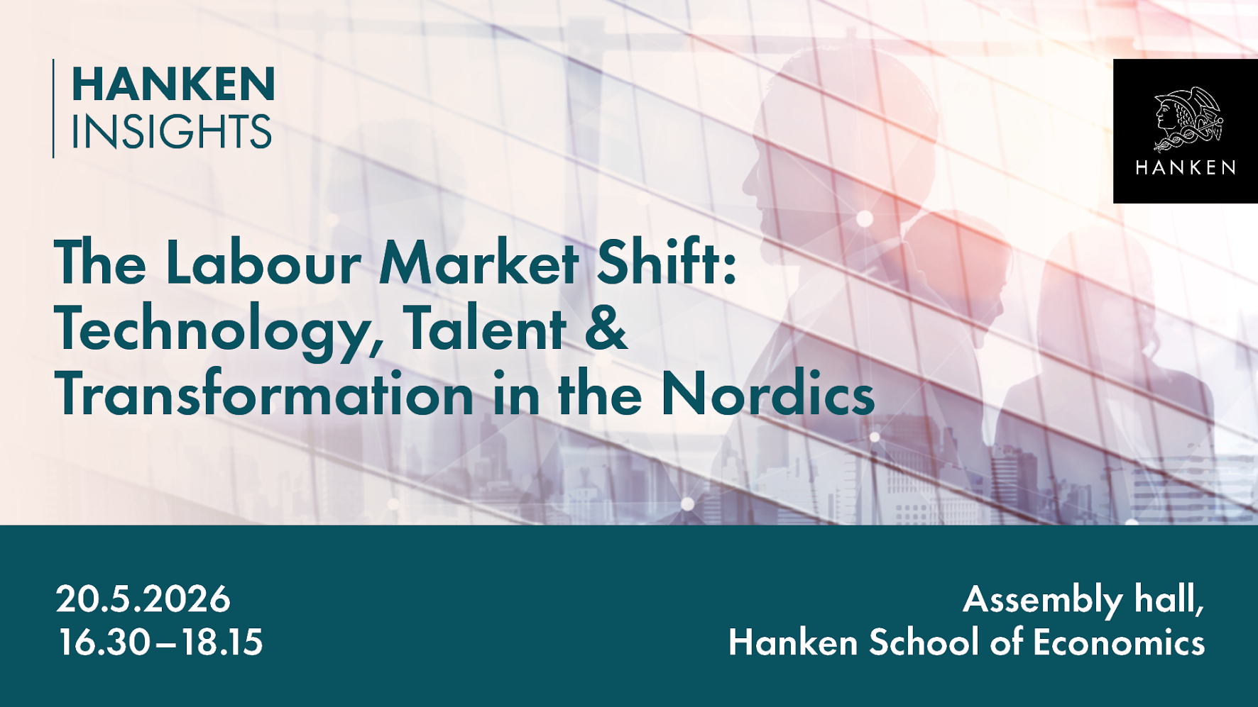 Welcome to the next edition of Hanken Insights! We will discuss the current state of the Nordic labour market and how it is shaped and impacted by technological and structural changes. Speakers include Juhana Vartianen (Professor of Practice, Hanken), Sofia Bougt-Hernnäs (Assistant Professor of Economics, Hanken) and Lari Hintsanen (CEO, Country Managing Partner Deloitte Finland). The seminar will be held in English.