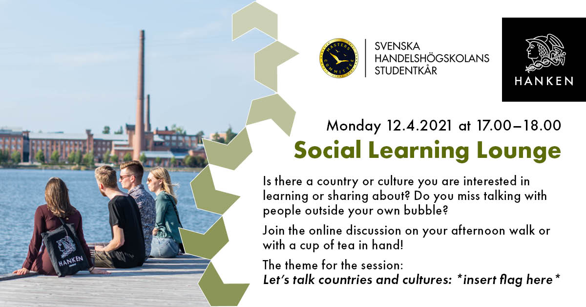 The Social Learning Lounge is a concept for all Hanken students that want to stay connected, inspired and why not: even make new friends. Through the event we want to offer exciting encounters in a time of division and isolation.